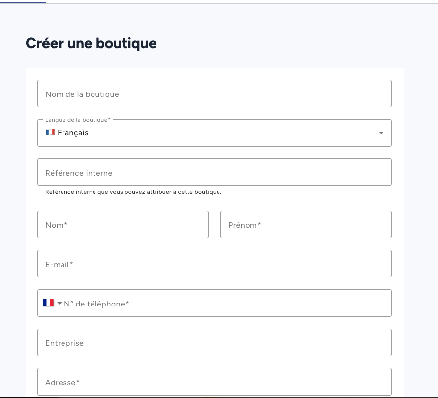 - Rendez-vous dans Gestion de boutiques > Créer une boutique.