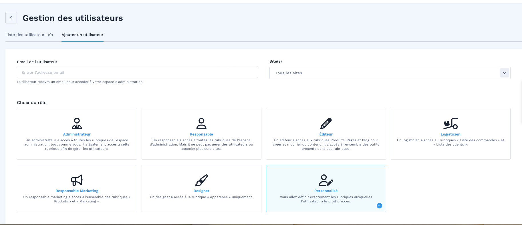 Une fois la boutique créée, vous devez accéder à son back office WiziShop pour y ajouter l'étudiant en tant qu'utilisateur.